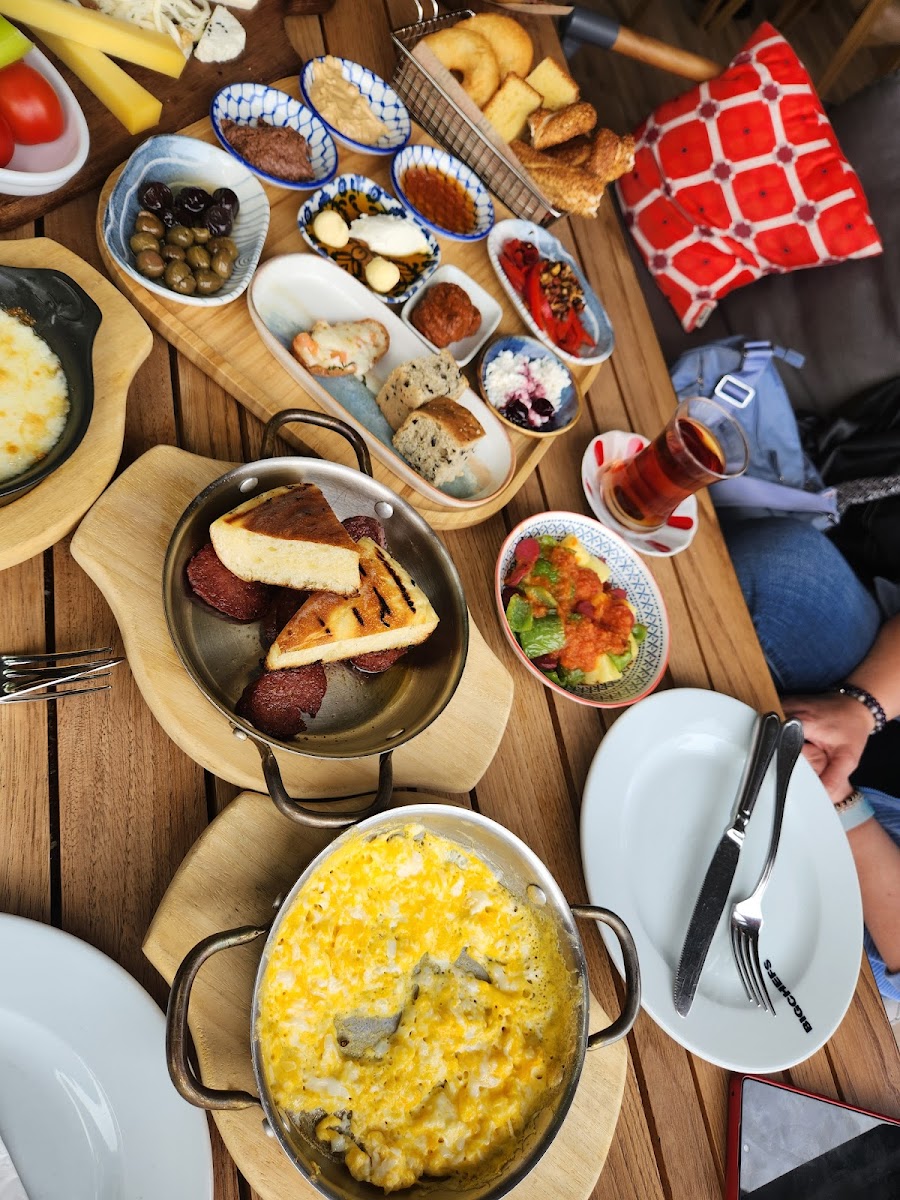 The menu is thoughtfully designed and reflects a balance between familiar comfort and modern taste. One of the most talked-about items is the Serpme Kahvaltı, which turns breakfast into a shared experience filled with variety. Fresh kahvaltılık items are served generously, creating a table that feels abundant and inviting. Toast options are also popular, simple yet satisfying, and ideal for those who prefer a lighter start to the day. Each masa feels well-spaced, allowing guests to enjoy their food without feeling rushed or crowded.